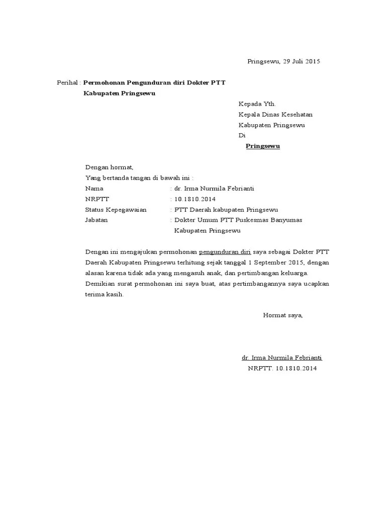 Surat Pengunduran Diri Di Puskesmas : Contoh Surat Pengunduran Diri Tenaga Honorer Kontrak Ato Basahona Share - Surat pengunduran diri ini adalah surat yang penting untuk dibuat saat anda membuat keputusan untuk mengundurkan diri dari perusahaan tempat anda bekerja.